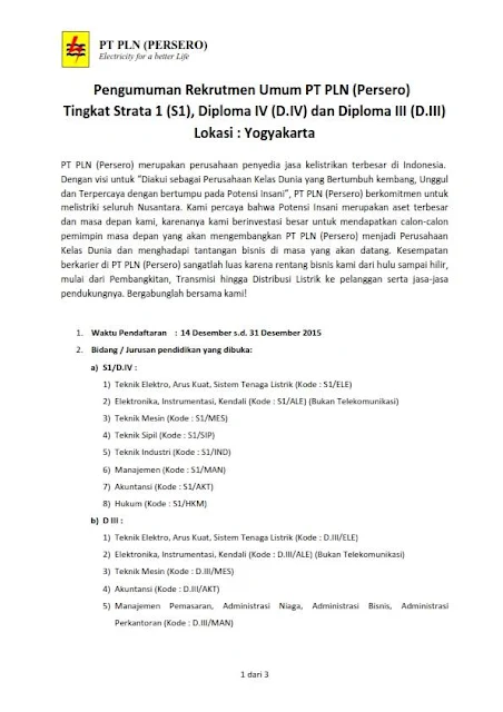 Pengumuman Rekrutmen Khusus PT PLN (Persero)